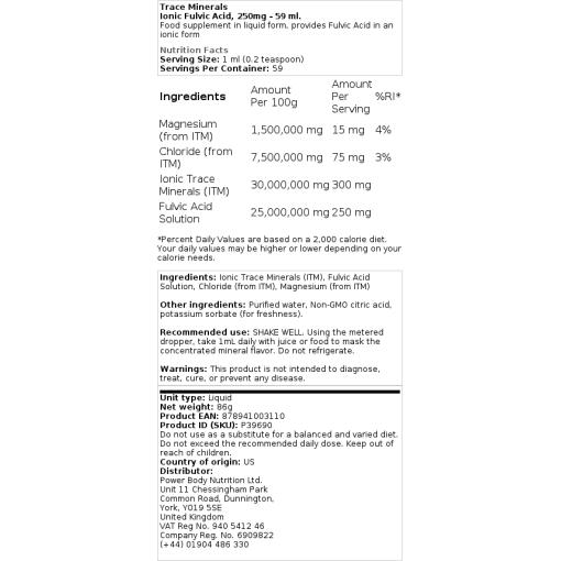 Ionic Fulvic Acid est un complément alimentaire liquide riche et concentré qui fournit 250mg de solution d’acide fulvique par portion, plus des oligo-éléments ioniques concentrés à spectre complet. L’acide fulvique peut aider à soutenir et à maintenir des fonctions saines dans le corps, notamment les suivantes : digestion, équilibre du pH, production d’énergie, hydratation, intégrité cellulaire, activité enzymatique, endurance musculaire et résistance.