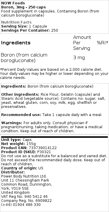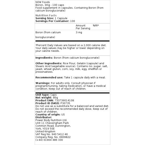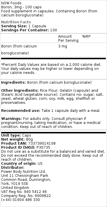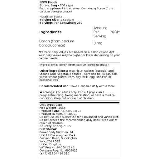 Le bore est un oligo-élément biologiquement actif qui affecte le métabolisme du calcium, du magnésium et du phosphore. Le bore est connu pour soutenir la force et la structure des os.