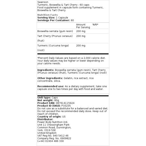 Pour un soutien efficace, notre produit Swanson Premium Full Spectrum Turmeric, Boswellia & Tart Cherry est une excellente option. Depuis des siècles, le boswellia et le curcuma sont les aliments de base des herboristes ayurvédiques pour promouvoir la santé des articulations. La science moderne a révélé que ces herbes ancestrales contiennent des antioxydants, dont l’acide boswellique et les curcuminoïdes. Les cerises acides sont également pleines d’antioxydants qui semblent avoir des avantages spécifiques pour la santé des articulations. Combinés, ils offrent un soutien exceptionnel pour une fonction articulaire confortable.