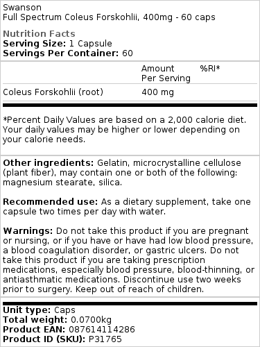 Full Spectrum Coleus Forskohlii, 400mg – 60 gélules