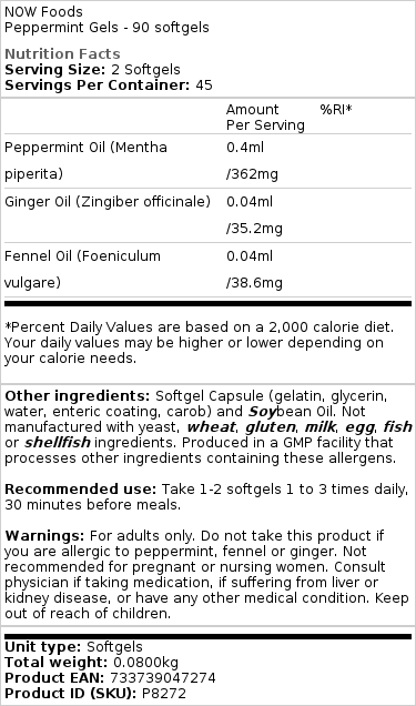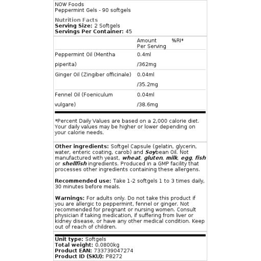 L’huile de menthe poivrée est recommandée depuis des siècles par les herboristes traditionnels pour favoriser une digestion saine. Plus récemment, on a découvert qu’elle soutient une fonction gastro-intestinale normale. Les gels à la menthe poivrée NOW sont entérosolubles pour permettre le passage dans l’estomac et la libération dans les intestins où elle peut être utile pour soulager les petits malaises intestinaux occasionnels.
