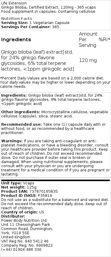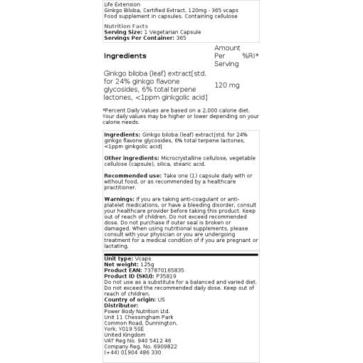 Life Extension – Ginkgo Biloba, extrait certifié