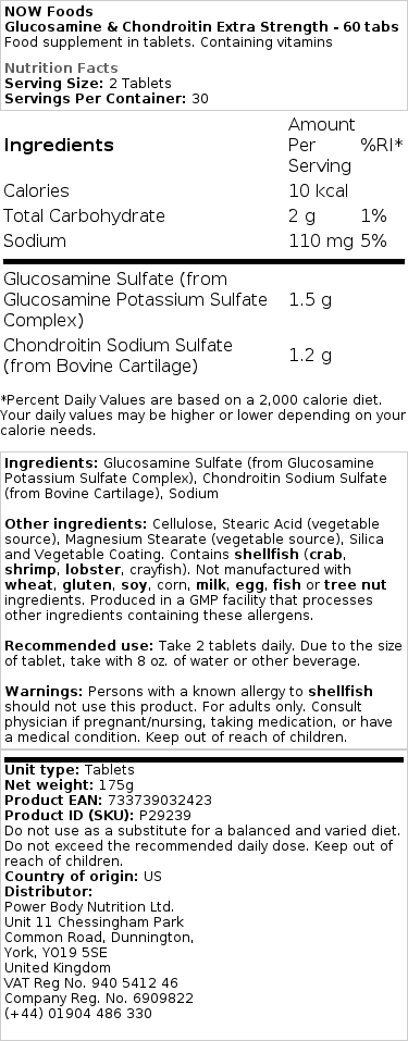 La Glucosamine & Chondroitin Extra Strength de NOW Foods est un complément alimentaire de haute qualité conçu pour soutenir la santé des articulations et des cartilages. Cette formule puissante contient une combinaison unique de glucosamine et de chondroïtine, deux ingrédients essentiels pour maintenir la mobilité et la flexibilité des articulations.