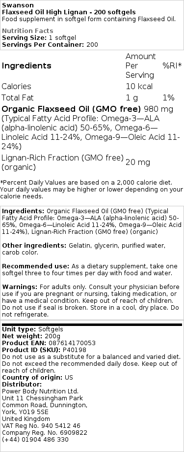 Swanson – Huile de lin à haute teneur en lignane