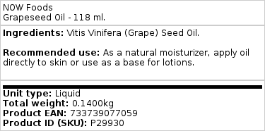 Offrez à votre peau et à vos cheveux les bienfaits de l’huile de pépins de raisin avec le Grapeseed Oil de NOW Foods. Un produit naturel, efficace et de qualité supérieure pour une beauté au naturel.