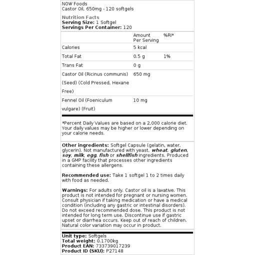 L’huile de ricin est une huile dérivée des fèves de la plante de ricin (Ricinus communis). L’huile de ricin est reconnue depuis longtemps comme un puissant laxatif qui peut être utilisé pour soulager la constipation occasionnelle.