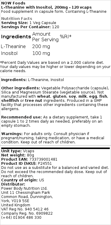 La L-Théanine est un acide aminé que l’on trouve naturellement dans le thé vert. La L-Théanine favorise la relaxation sans la somnolence ou les effets secondaires négatifs associés à d’autres agents calmants. La L-Théanine soutient également une fonction cardiovasculaire saine grâce à cet effet relaxant. Cette formulation comprend également de l’Inositol, un membre de la famille des vitamines B qui est essentiel à la santé du cerveau et du système nerveux.