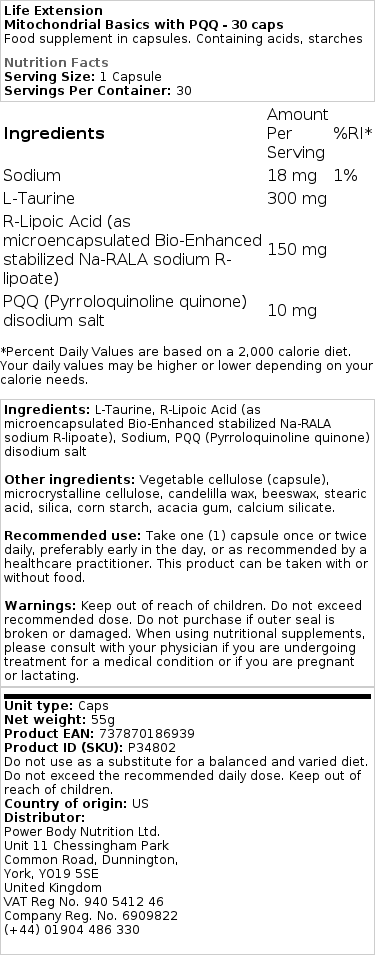 Life Extension – Les bases de la mitochondrie avec PQQ