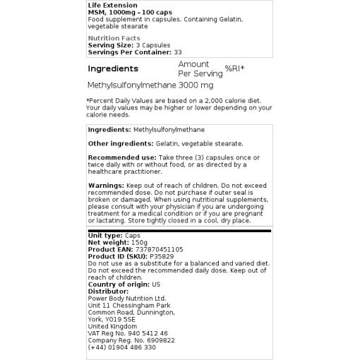 Le MSM (méthylsulfonylméthane ou diméthylsulfone) est une molécule contenant du soufre que l’on trouve dans diverses plantes et dans certains tissus corporels. Le MSM est un élément constitutif essentiel des articulations, du cartilage, de la peau, des cheveux et des ongles. Il constitue une source efficace du soufre utilisé par de nombreuses molécules structurelles du corps. Certaines recherches cliniques évaluées par des pairs aux États-Unis ont montré que le MSM est sûr et efficace pour augmenter le confort des articulations et favoriser une amplitude de mouvement normale.