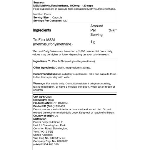 Swanson – MSM Méthylsulfonylméthane