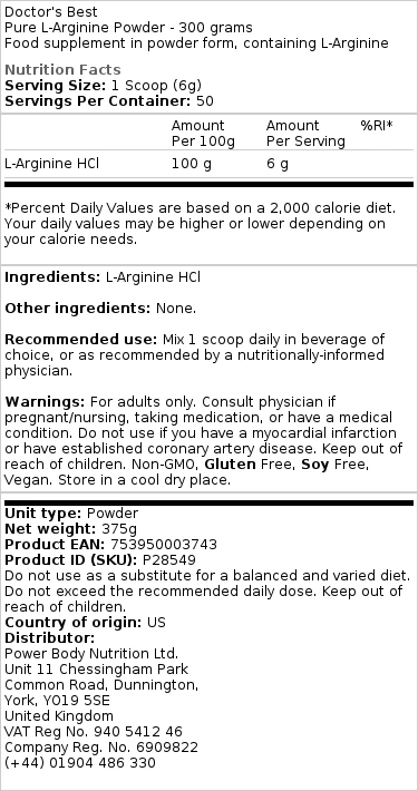 Doctor’s Best – L-Arginine pure en poudre
