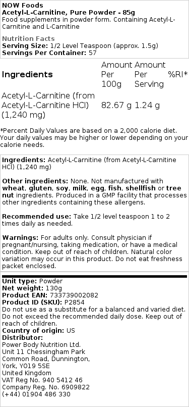 - Zuivere Acetyl-L-Carnitine in handige poedervorm.