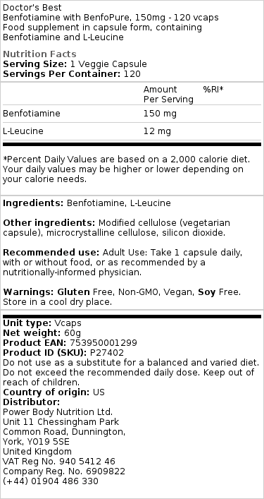 - Kwaliteit: Geformuleerd met BenfoPure, een hoogwaardige vorm van benfotiamine.