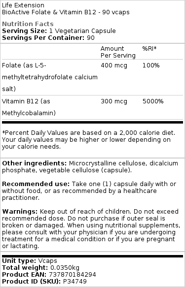 Ga voor Life Extension – Bioactieve Foliumzuur en B12 Vitamine als onderdeel van jouw evenwichtige levensstijl. Bestel vandaag nog om dit hoogwaardige supplement toe te voegen aan je dagelijkse regime!