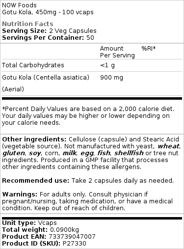 - Inhoud: Elke verpakking bevat 100 plantaardige capsules met elk 450 mg Gotu Kola.