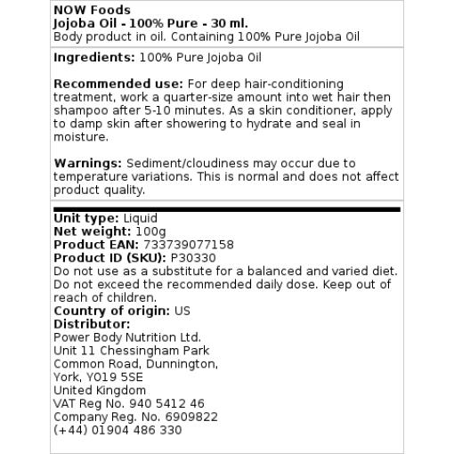 NOW Foods Jojobaolie – 100% puur – 30 ml is een veelzijdige, natuurlijke olie die perfect past in uw dagelijkse routine. Deze hoogwaardige jojobaolie komt in een praktische fles van 30 ml,ideaal voor zowel thuisgebruik als onderweg.