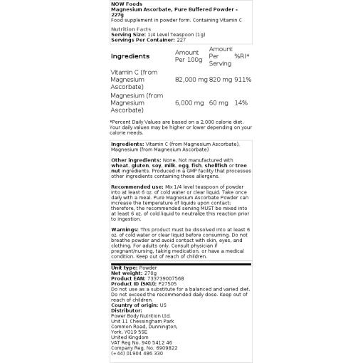 Productbeschrijving van NOW Foods – Magnesiumascorbaat, poeder met buffer – 227g
