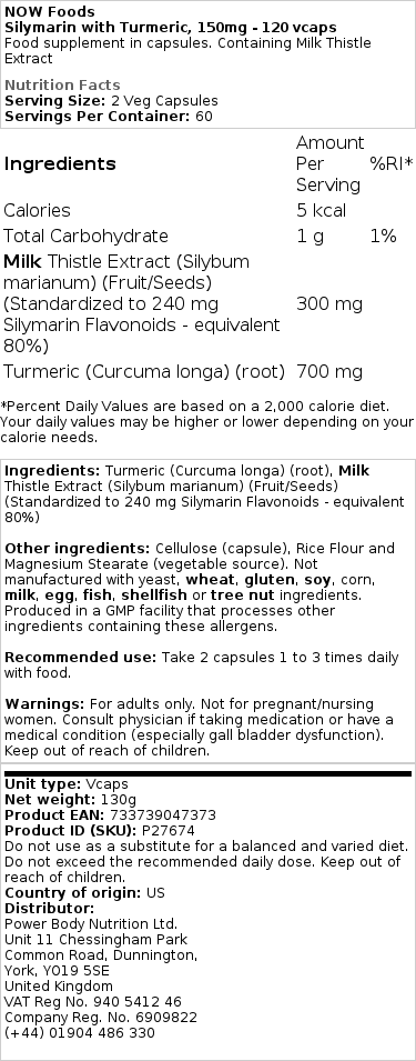 NOW Foods – Mariadistel Extract, 150 mg – 60 Veganistische Capsules