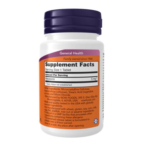 NOW Foods – Melatonine 5 mg Langdurige Afgifte – 120 tabletten is een zorgvuldig samengesteld supplement dat gebruik maakt van natuurlijke ingrediënten. Deze tabletten zijn ontworpen om melatonine geleidelijk vrij te geven over een periode van vier uur.