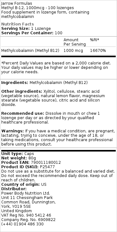 - Inhoud: 2500 mcg methylcobalamine per tablet.