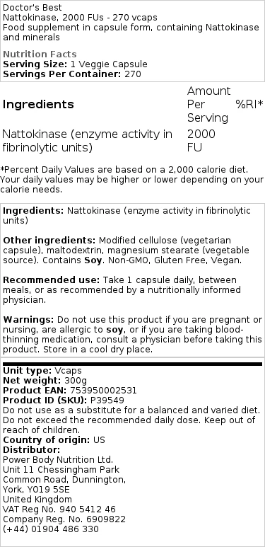 Productbeschrijving van Doctor’s Best – Nattokinase, 2000 FUs – 90 vegetarische capsules