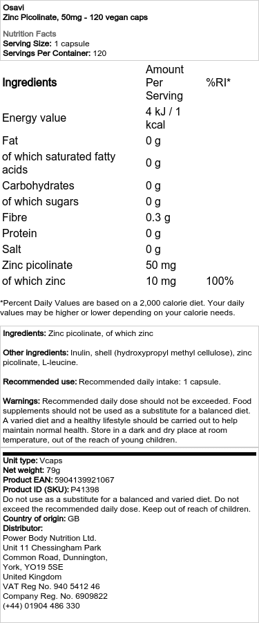 Osavi – Zinkpicolinaat, 50 mg – 180 vegetarische capsules